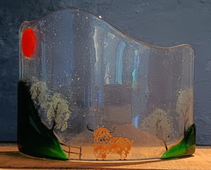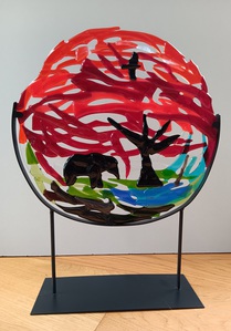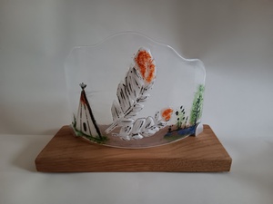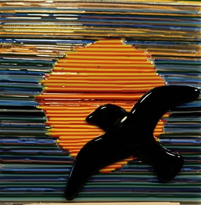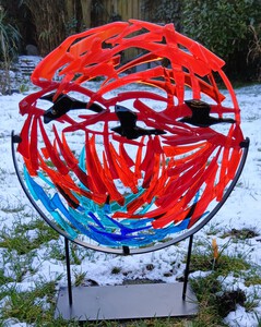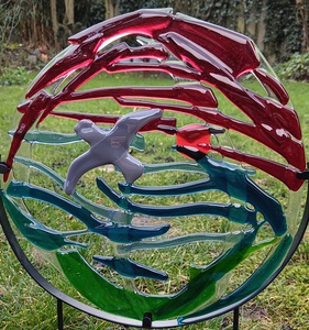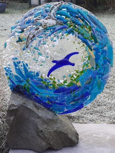 2022The is nothing more exciting than the sea, with it's power and majesty and so much unknown. using glass and heat I have brought together my interpretation of the sea. The bird is a combination of glass fusion and oven fired painting.