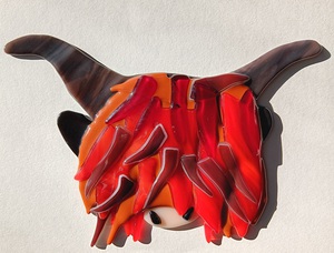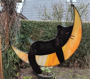 2022Our Maine Coon spends a lot of time checking on what is going on outside so I thought I would capture the moment in glass. He has not commented on the likeness. This is a piece using special coloured and textured glass and the tiffany method of glasswork.