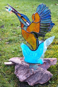 2022The Kingfisher is a rare bird to see, with magnificent colours making it even more special when you do see one. Combining oven fired painting and tiffany brings the bird to you.