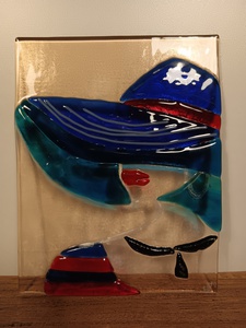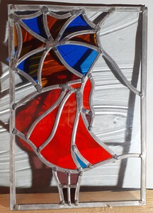 2022A small piece with some stunning red simply lights up the room, my lady in red could also be in blue, black or white. Here the red is superb. Stained glass, simple panel.